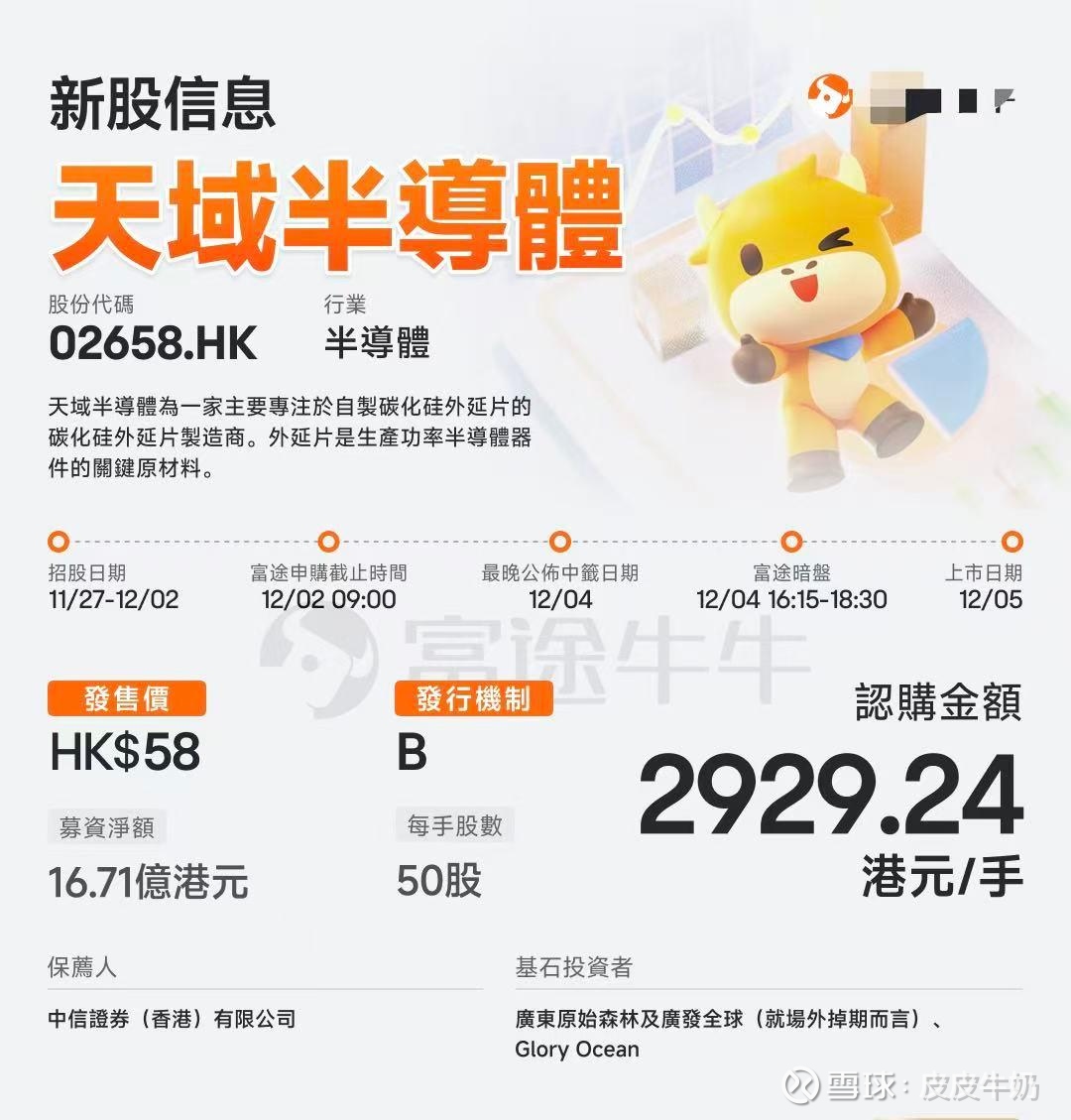 【招股价】58HKD;每手50股