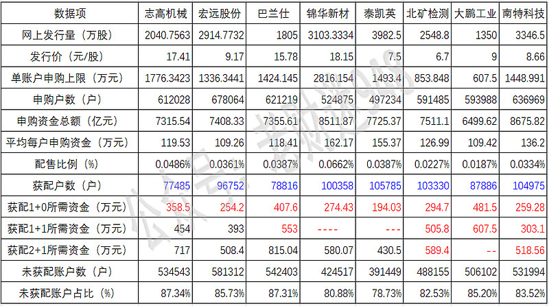 根据获配账户与申购资金数据计算,这次申购账户平均每户申购资金达到136.2万元,比单账户申购上限达到1776万元而申购账户还回复少的志高机械的平均每户申购金额还提高了近17万元。