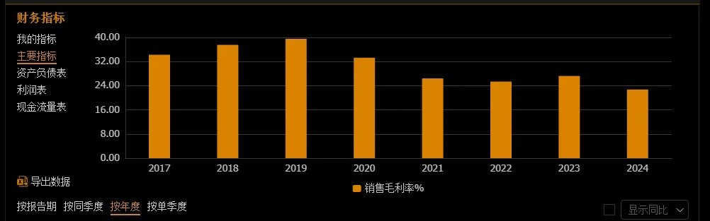 第二,毛利之困。以下是近几年毛利率水平,逐年下滑。