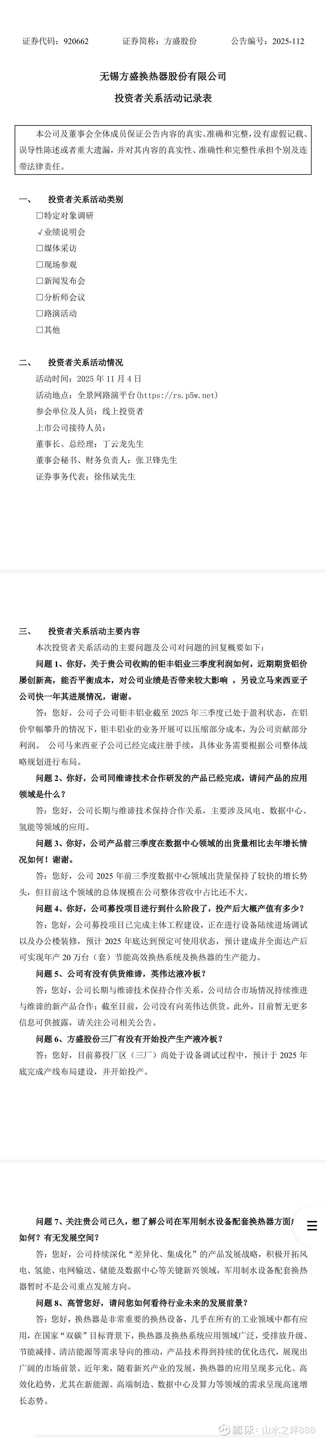 昨晚因业绩超预期,维谛技术大涨20+创出历史新高,作为国内与维谛技术有10多年合作历史的北交所上市公司,方盛股份无疑是最正宗的潜在对标补涨公司,加上目前流通市值不到8亿,上涨空间和股价弹性巨大!$维谛技术(VRT)$ $方盛股份(BJ920662)$