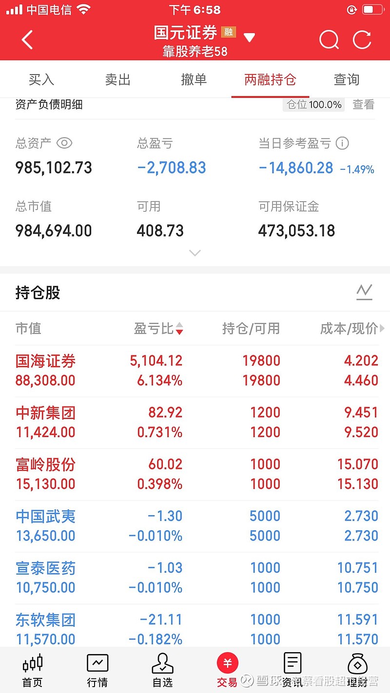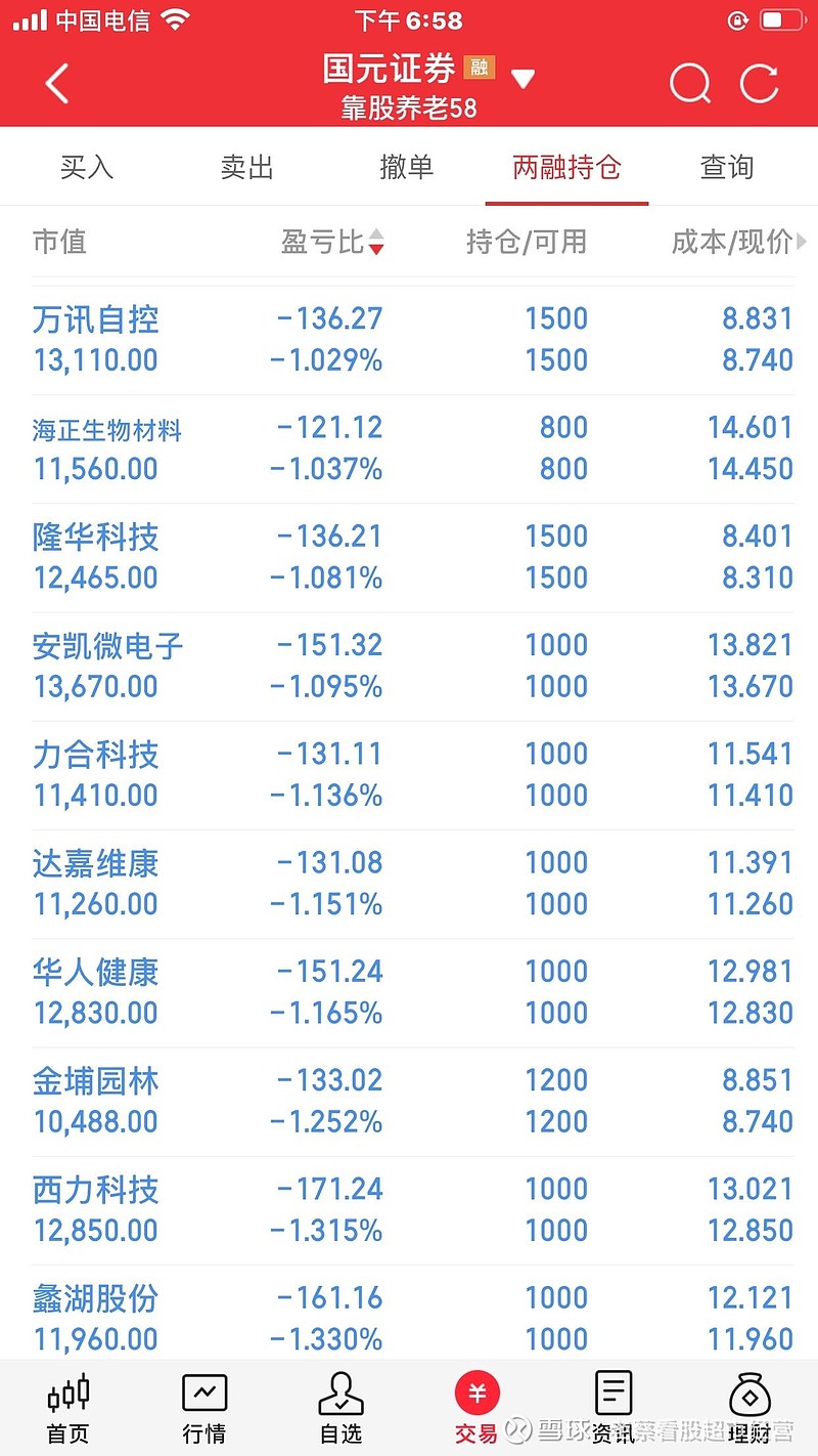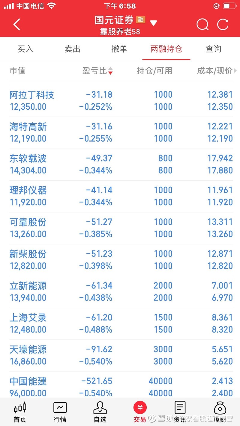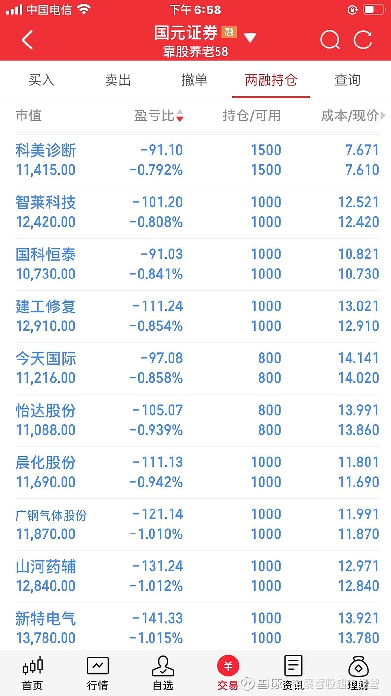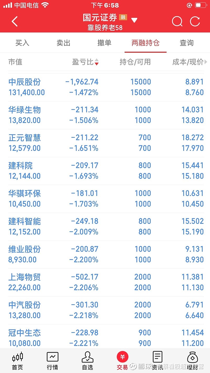 把历史的自选股基本上全部删了,重新布局以3头为中心的。以个股仓位控制在百分之1.2左右,目前持有56只,中辰仓位过重是点错了,另外囯海证券和中囯能建占总仓位约百分之18准备长线。