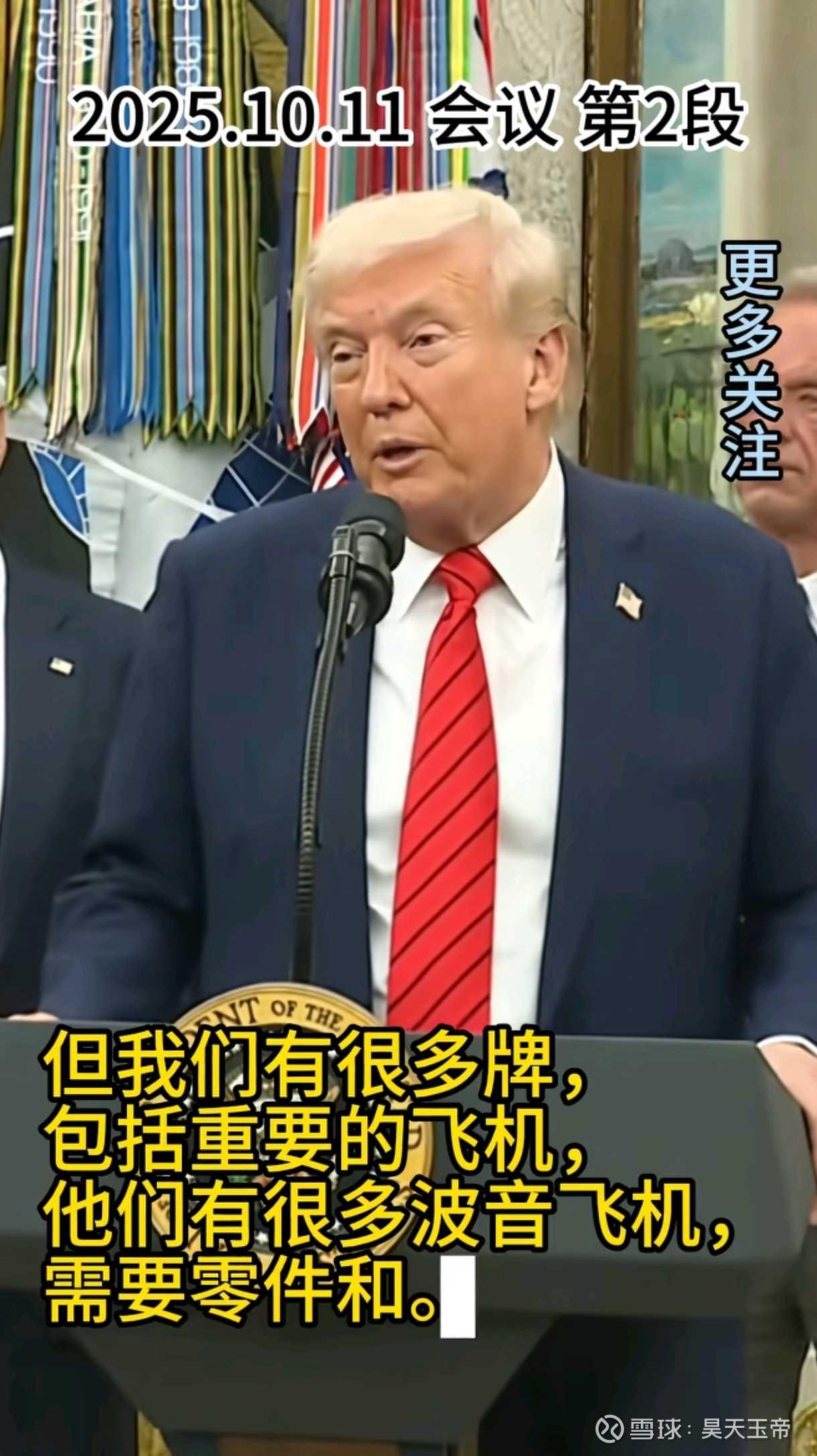 10月11日报道,美国总统特朗普周五在白宫接受记者采访时表示,作为对中方限制稀土矿物出口的回应措施之一,美国可能会对波音公司的飞机零件实施出口管制。