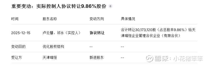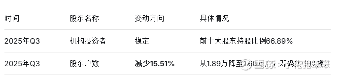 关键信号: 实控人转让近10%股份给新设合伙企业,可能是为引入战略投资者或优化治理结构 股东户数大幅减少15.51%,筹码趋于集中,通常预示机构在悄然布局 -2-3 前十大股东持股比例高达66.89%,股权结构稳定