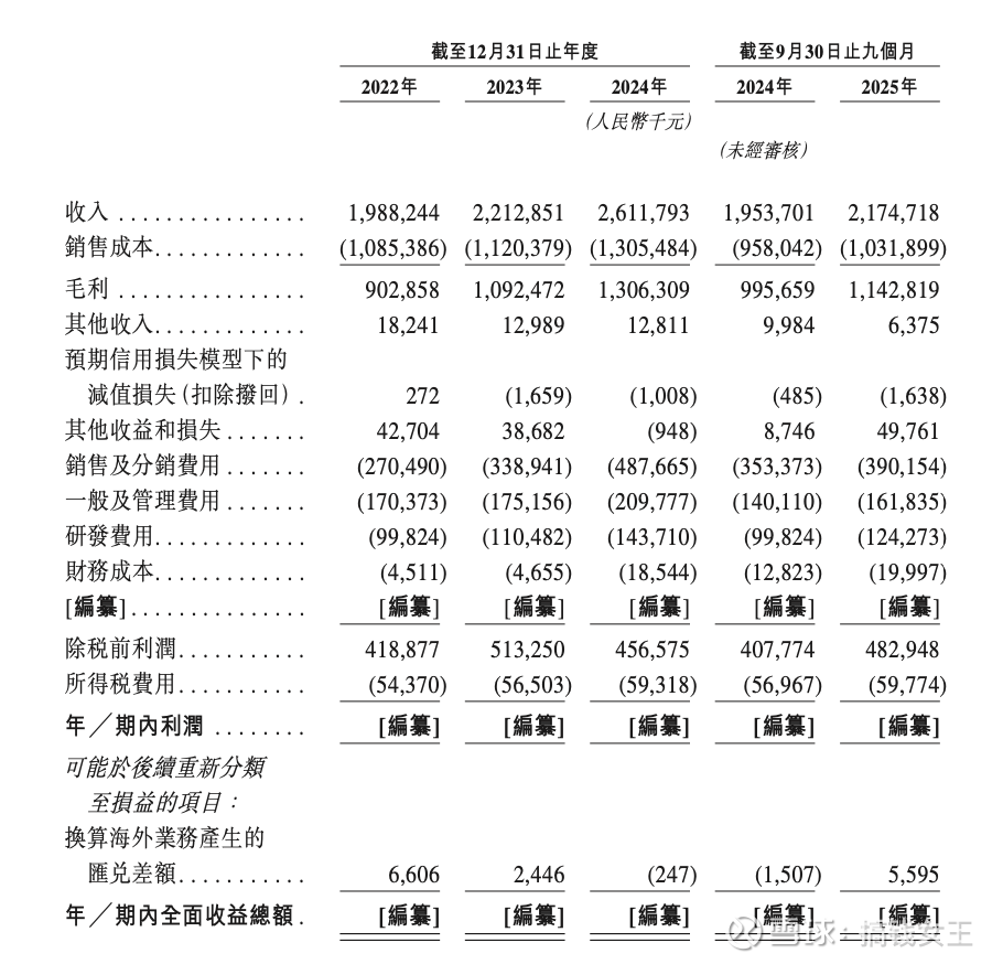 复合年增长率为20.3%,对应的毛利率分别为45.4%、49.3%及50.0%;2025年前三季度毛利达11.4亿元,同比增长14.8%,