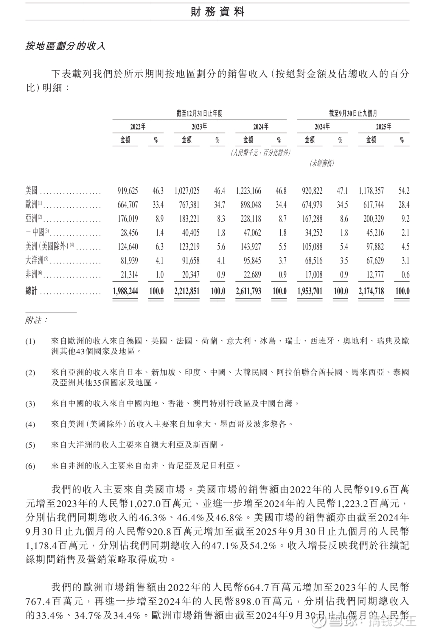 2025年前三季度,其在美国、欧洲、亚洲(不含中国)、