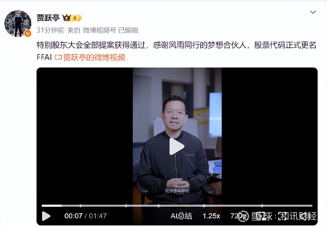 新浪科技讯 3月10日上午消息,法拉第未来创始人贾跃亭在社交媒体发布视频称,特别股东大会在3月7日成功召开,全部提案都获得投票通过,这不仅为FX系列产品的量产交付铺平道路,也让我们肩上的责任更重。