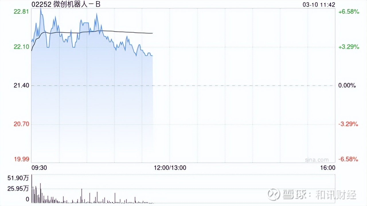 微创机器人-B(02252)早盘逆市上涨2.80%,现报22港元,成交额1.72亿港元。