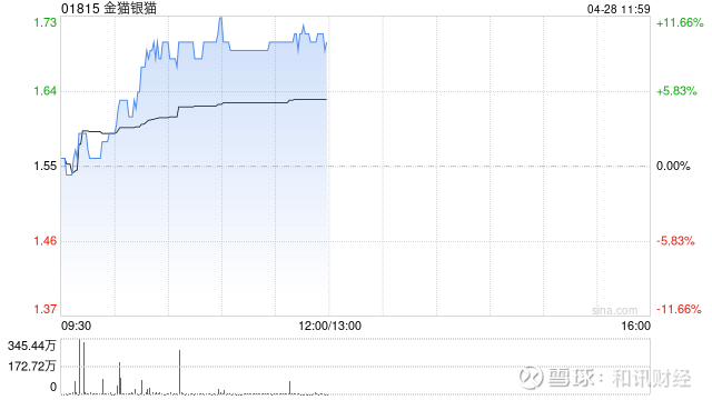 金猫银猫(01815)早盘一度涨近12%,截至发稿,股价上涨10.32%,现报1.71港元,成交额3527.03万港元。