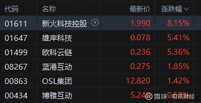 加密货币概念股普涨,新火科技控股涨超8%。6月15日,陈茂波在发表的名为《提速前进 扬帆稳航》的网志中表示,在《稳定币条例》生效后,香港金管局将尽快处理收到的牌照申请,以便合资格的申请人开展其业务。他同时透露,香港即将就数字资产的发展发表第二份政策宣言,阐述下一步的政策愿景和方向。