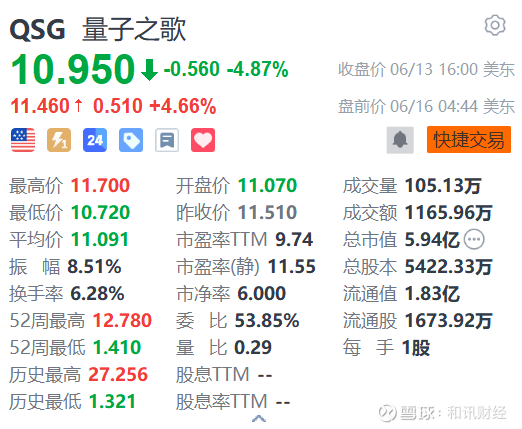 格隆汇6月16日|量子之歌(QSG.US)盘前涨4.66%报11.46美元;该股曾于6月6日至6月11日连续4个交易日上涨累涨115.74%,股价实现4日翻倍。消息面上,量子之歌曾于3月24日宣布对深圳熠起文化有限公司(Letsvan)达成并购投资合作,正式进军潮流玩具市场。