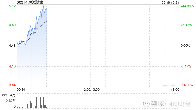思派健康(00314)早盘持续走高,股价上涨11.83%,现报5.01港元,成交额1.07亿港元。