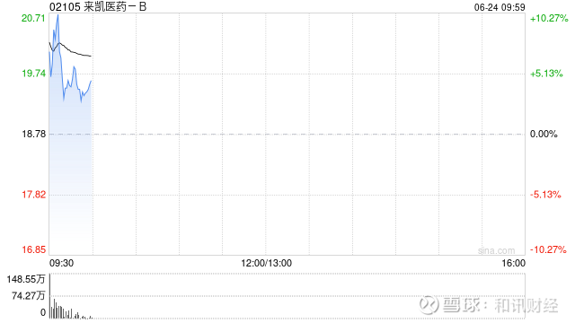 来凯医药-B(02105)早盘一度涨逾10%,截至发稿,股价上涨3.83%,现报19.50港元,成交额1.44亿港元。