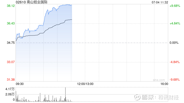 南山铝业国际(02610)午前涨幅持续扩大,股价上涨9.35%,现报38港元,成交额2055.37万港元。