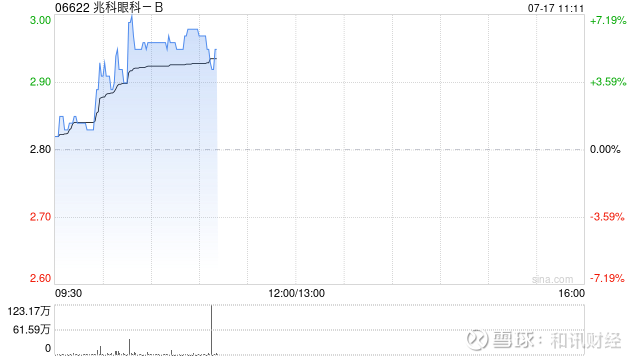 兆科眼科-B(06622)盘中涨超5%,截至发稿,股价上涨4.29%,现报2.92港元,成交额1006.76万港元。