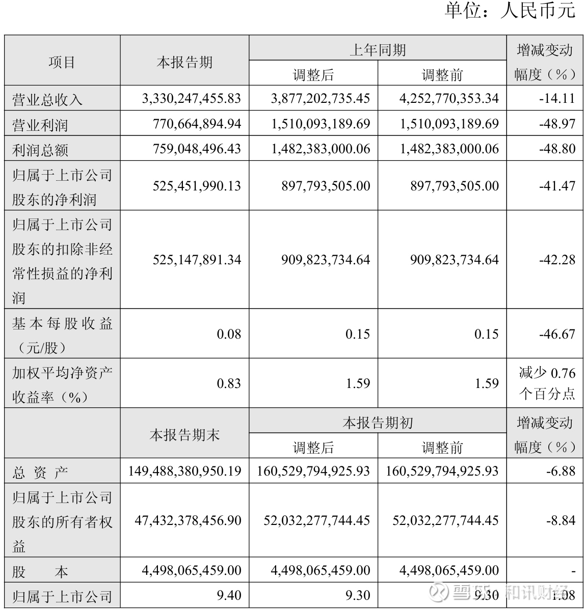 五矿资本(600390)发布2025年半年度业绩快报。根据披露,2025年上半年,公司实现营业总收入33.3亿元,较上年同期下降14.11%;实现利润总额7.59亿元,较上年同期下降48.80%;实现归属于上市公司股东的净利润5.25亿元,较上年同期下降41.47%;实现归属于上市公司股东的扣除非经常性损益的净利润5.25亿元,较上年同期下降42.28%。