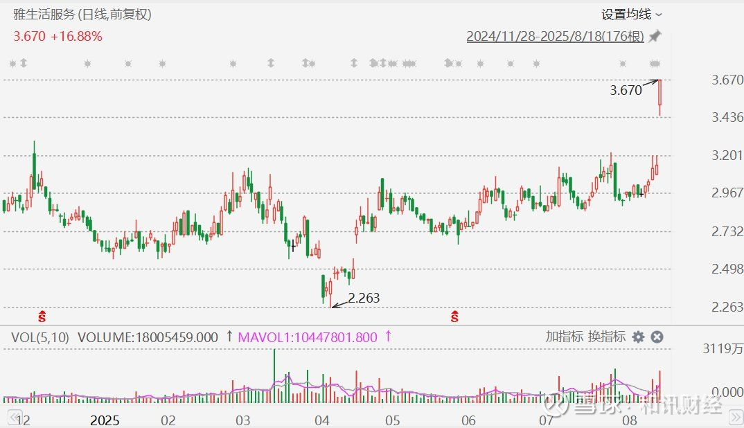 格隆汇8月18日|雅生活服务(3319.HK)盘初大涨近17%,报3.67港元,股价创去年10月以来新高。雅生活服务周末发盈喜,预期截至今年6月底止6个月股东应占利润介乎约3亿元-4亿元,而去年同期股东应占亏损则为16.3亿元。