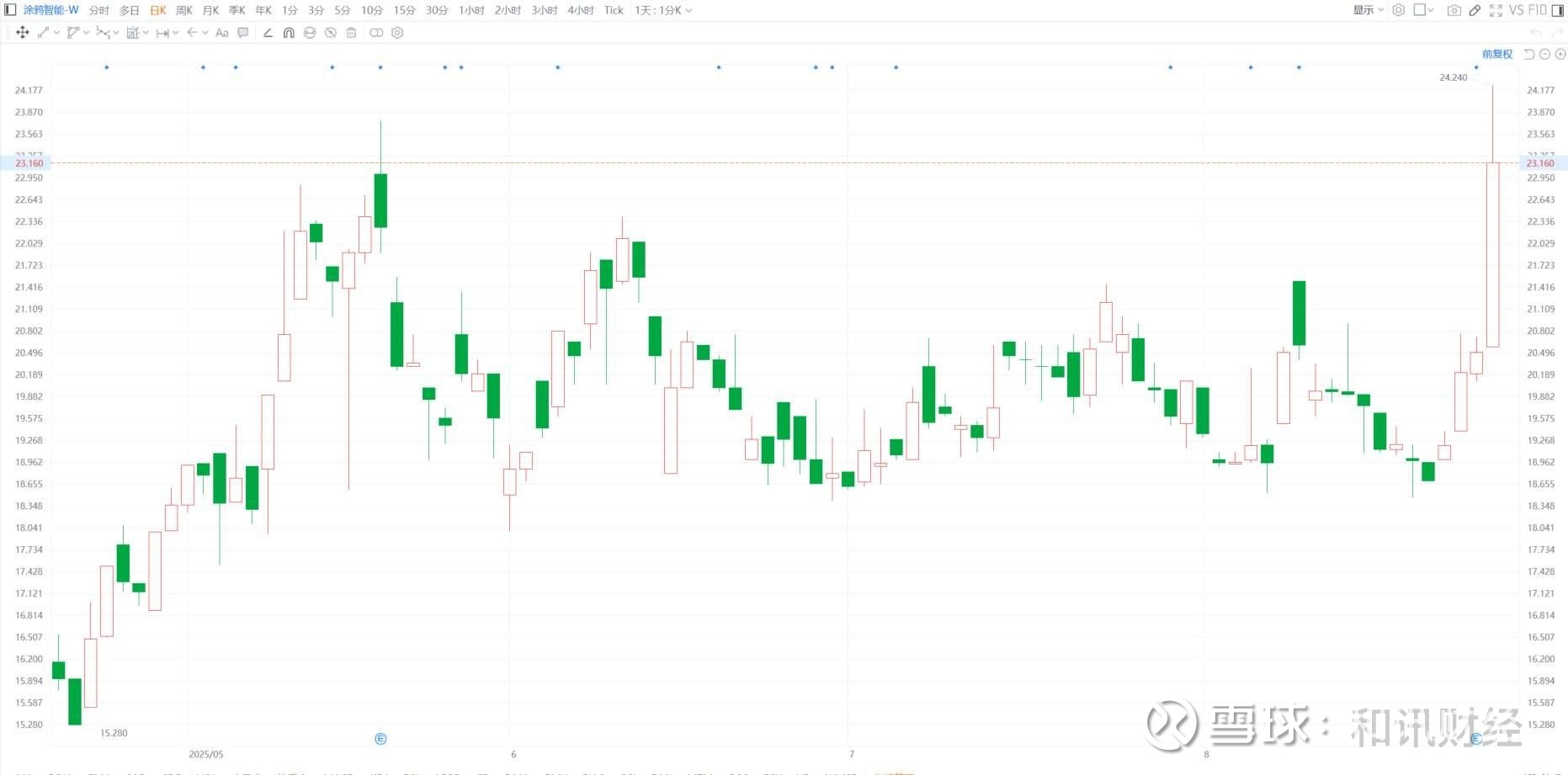 格隆汇8月27日|涂鸦智能-W(2391.HK)今日盘中一度大涨18.24%至24.24港元,股价创2025年4月1日以来近5个月新高。