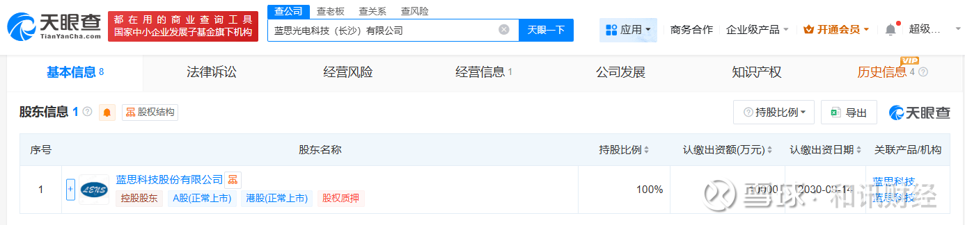 天眼查App显示,近日,蓝思光电科技(长沙)有限公司成立,法定代表人为周群飞,注册资本1亿人民币,经营范围包括光学仪器制造、光学仪器销售、虚拟现实设备制造、电子元器件批发等。股东信息显示,该公司由蓝思科技(300433)全资持股。