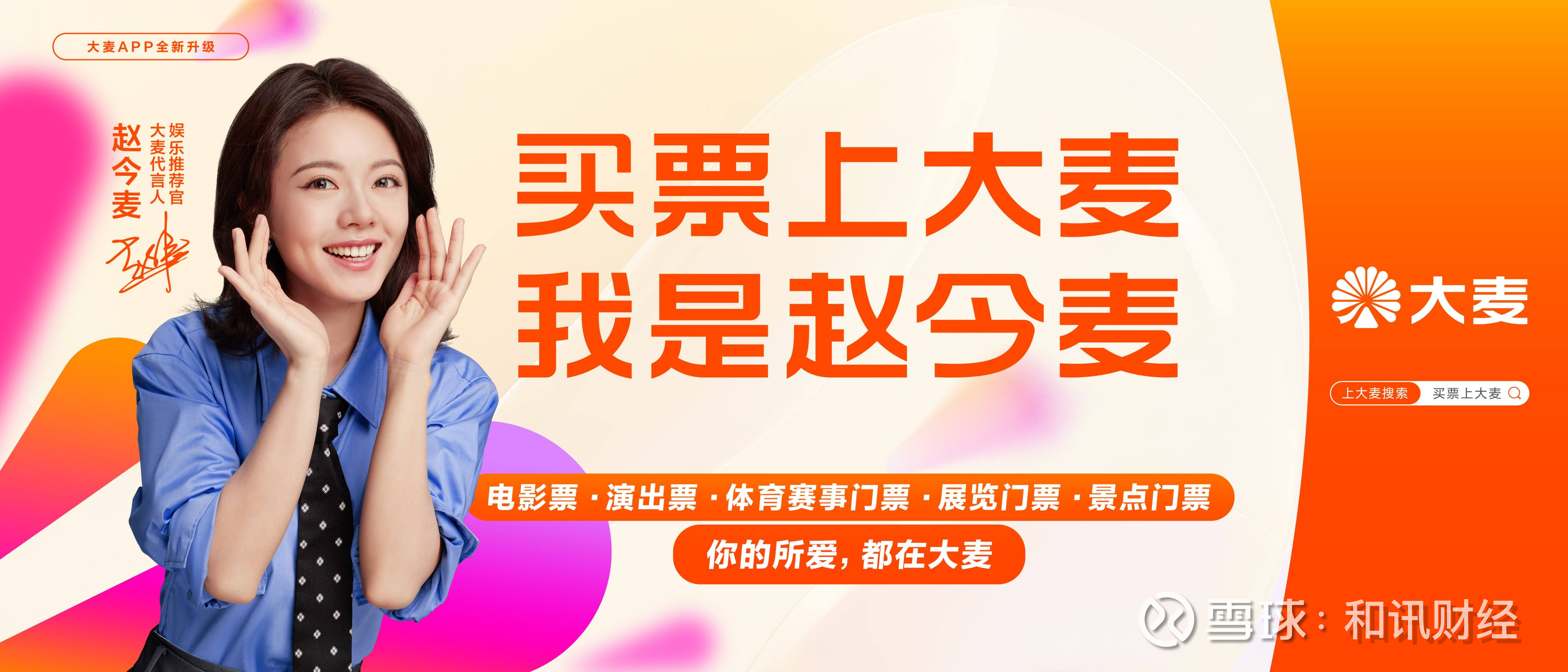 格隆汇9月22日|大麦今日官宣赵今麦为代言人。这是继推出吉祥物大麦麦宝、大麦VIP全新升级亮相后,大麦娱乐持续进行品牌焕新的又一关键动作。未来,大麦代言人赵今麦也将作为娱乐推荐官,为用户推荐包括电影、演出、体育赛事、展览、景点等在内的全品类现实娱乐消费内容。当天,大麦VIP还特别推出了赵今麦定制款会员速通卡,通过多品类优惠券、代言人小卡等多重“超值超惊喜”好礼,加码会员权益。
