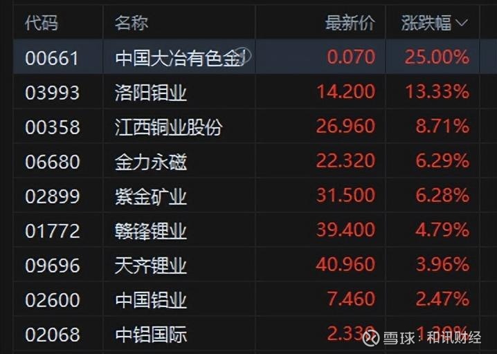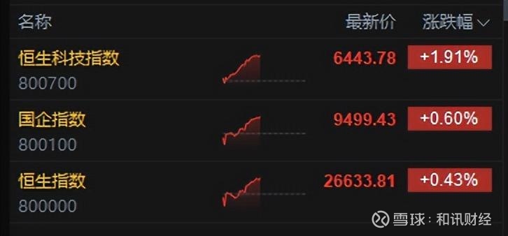 9月25日消息,港股三大指数集体上涨。截至午间收盘,恒生指数涨0.43%,报26633.81点,恒生科技指数涨1.91%,国企指数涨0.60%。盘面上,科网股普涨,京东涨超6%,哔哩哔哩、百度涨超4%,小米涨超3%,快手涨超2%,腾讯涨超1%;有色金属板块强势,洛阳钼业涨超13%;锂电池概念股持续拉升,宁德时代涨超5%创历史新高;汽车股走高,奇瑞汽车上市首日涨超8%;生物医药股活跃,君实生物涨超4%。