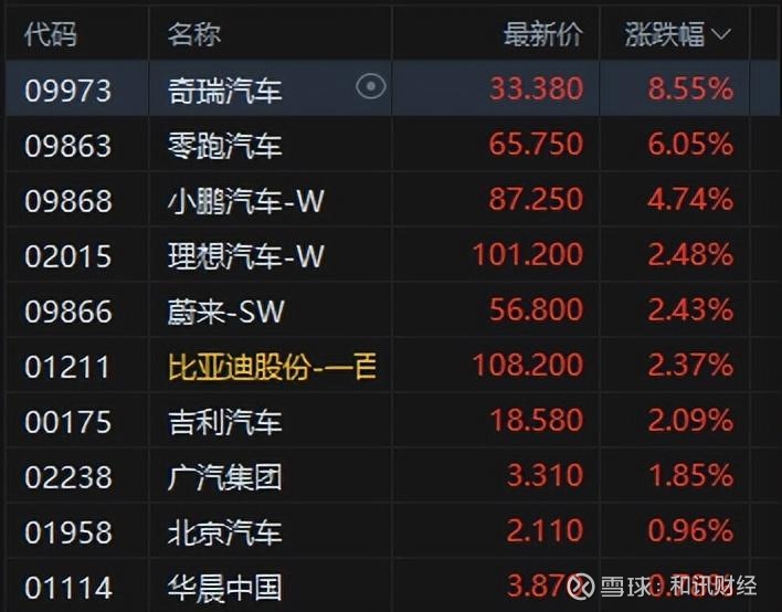 汽车股走高,奇瑞汽车上市首日涨超8%。公开发售阶段奇瑞汽车获308.18倍认购,公开发售的发售股份最终数目为2973.97万股股份,占发售股份总数的约10%。合共接获约20.79万份有效申请,受理申请数目68717份,申购一手获配发股份占所申请股份总数的概约百分比为0.67%。此外,国际配售阶段奇瑞汽车获11.61倍认购,国际发售股份最终数目为2.68亿股股份,相当于发售股份总数的90%。