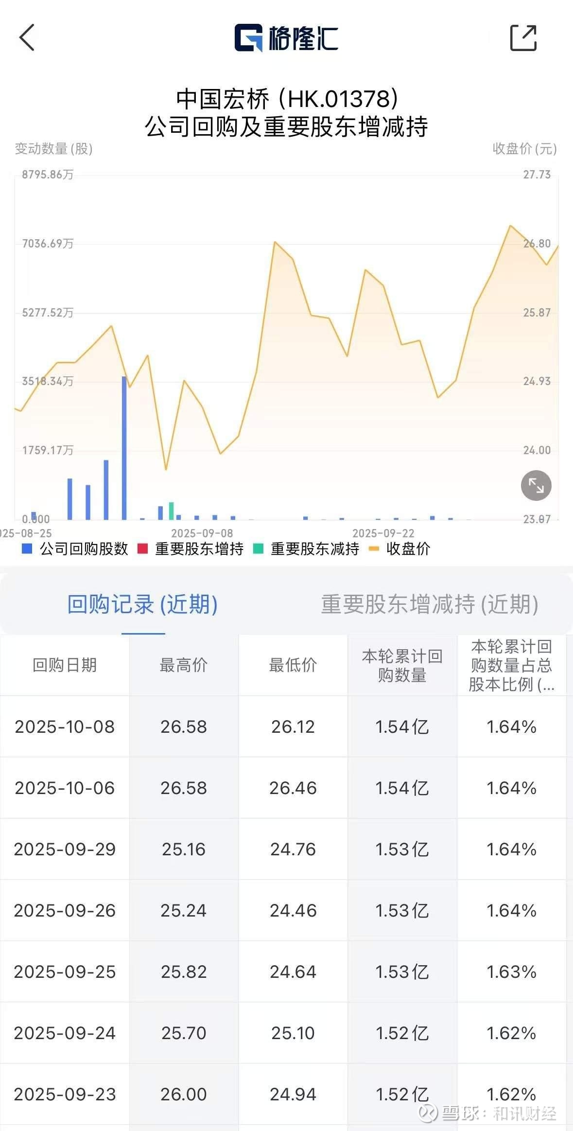 个股方面,中国宏桥持续回购公司股份,10月8日再度耗资233.71万港元回购8.85万股,回购价格每股26.12-26.58港元。杰富瑞曾表示,除了2025年上半年已回购的26亿港元外,中国宏桥还计划进行至少30亿港元的股票回购,并且年度股息达到60%以上,这进一步彰显了管理层对公司业绩的信心。