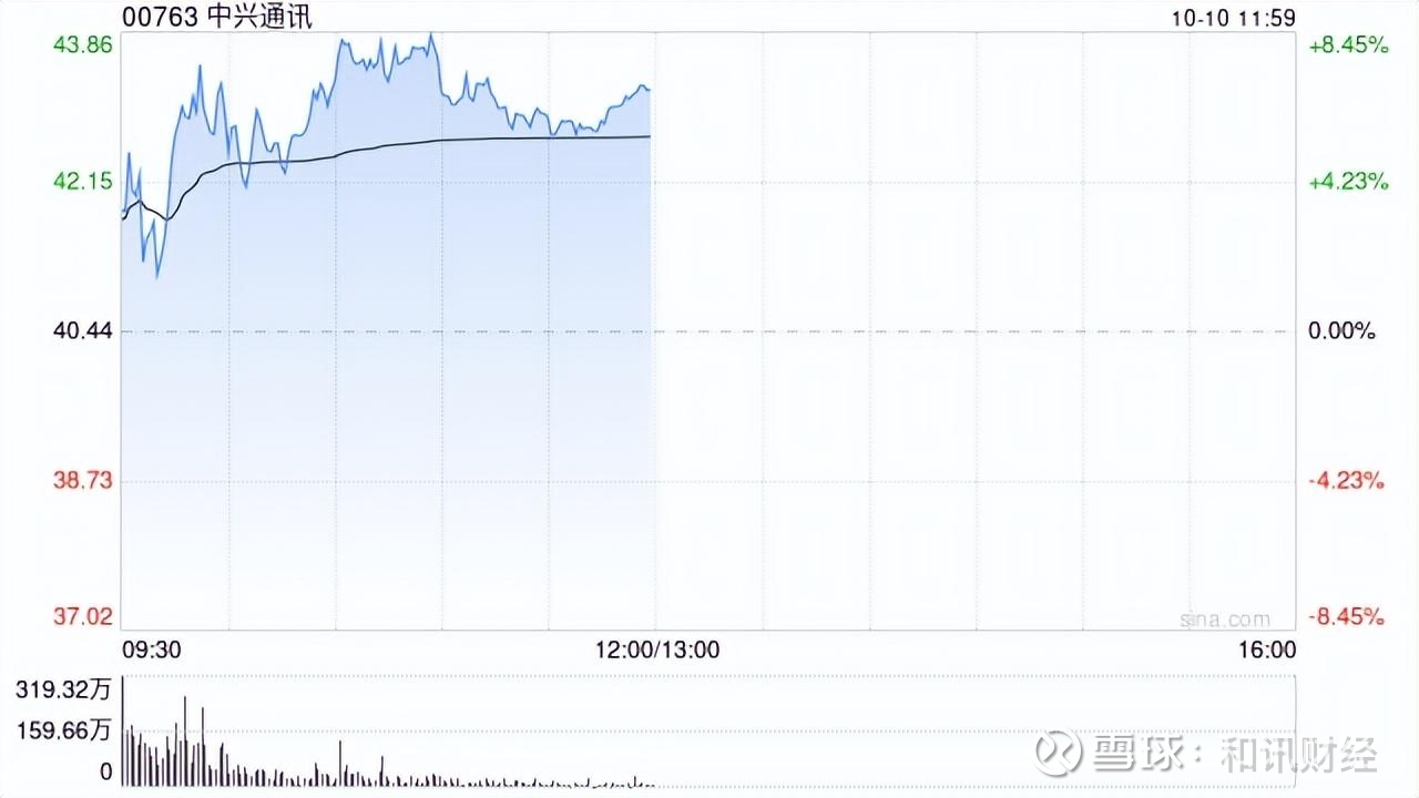 中兴通讯(00763)早盘一度涨超8%,高见43.88港元,创历史新高。截至发稿,股价上涨6.78%,现报43.18港元,成交额29.41亿港元。