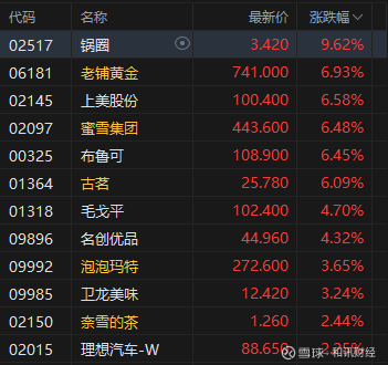 新消费概念普涨,老铺黄金涨超6%。国泰海通证券此前指出,当前我国外部环境面临更大扰动,提振内需消费的重要性和必要性日益凸显,政策支持下消费对经济的拉动作用有望强化。尽管当前港股新消费部分领域短期略显过热,但居民消费更加注重个性化和理性化的宏观趋势并未改变,该行预计悦己和性价比相关消费或延续增长趋势,如潮玩、美护、宠物等。