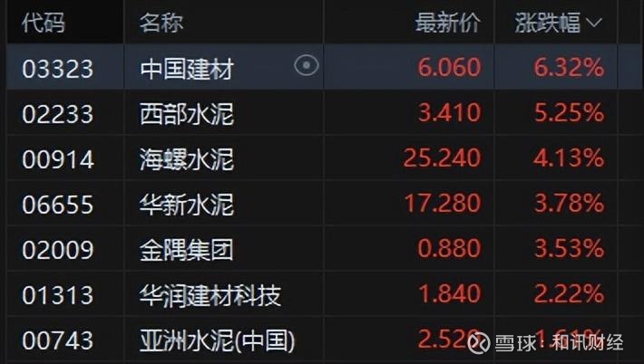 建材水泥股涨幅居前,中国建材涨超6%。中国建材预计前三季度净利润29.50亿元,同比扭亏为盈。主要由于水泥和商品混凝土等产品销售成本下降,应占联营公司利润上升。申万宏源发布研报称,三季度是水泥行业传统淡季,2025年水泥价格前高后低。泥出海布局持续有进展,华新水泥、西部水泥产能投放持续,非洲水泥盈利有望在高位且持续改善。