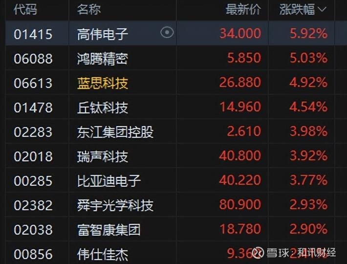 苹果概念涨幅居前,高伟电子涨超5%。隔夜,苹果股价因iPhone热销而创历史新高。研究机构Counterpoint报告显示,iPhone 17系列在中国和美国市场的早期销售强劲,销量比iPhone 16系列高出14%,其中iPhone 17基本款在中国销量几乎翻了一番。受消息影响,苹果收涨近4%创历史新高,总市值升至3.89万亿美元,成为美国第二大市值公司。
