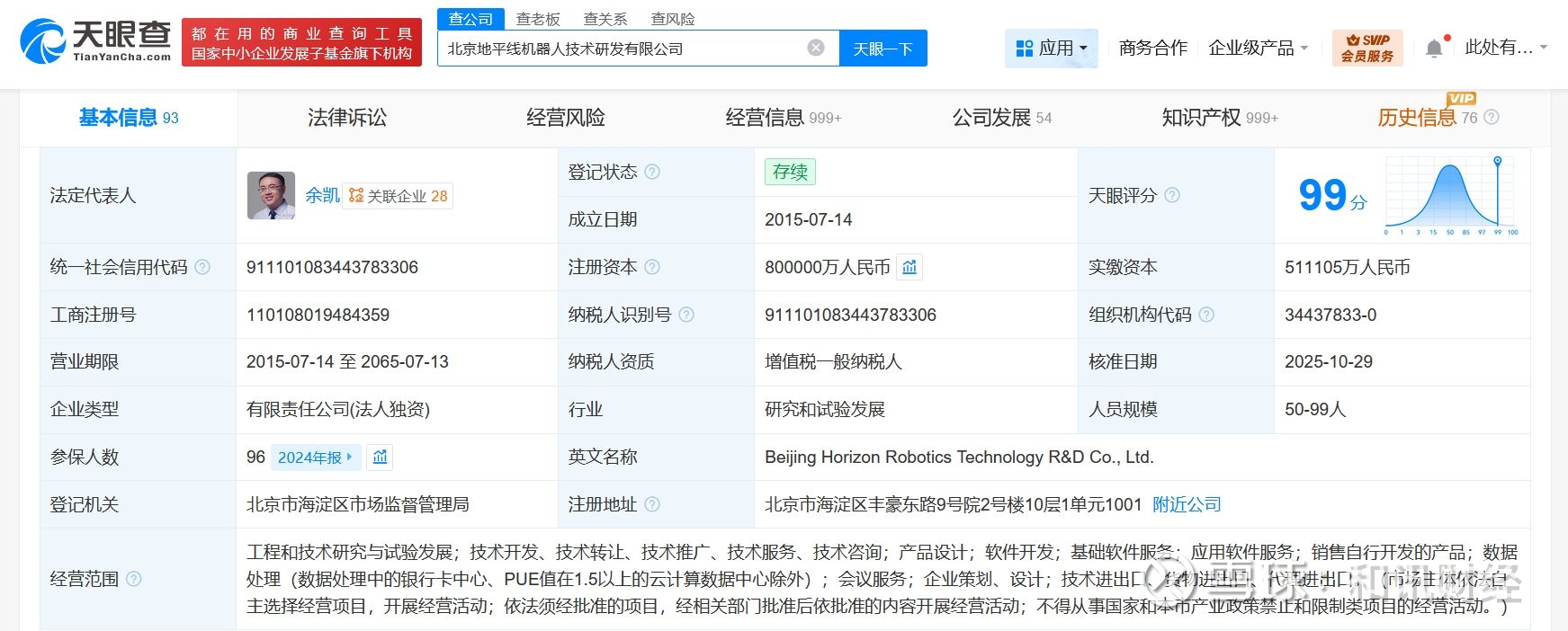 该公司成立于2015年7月,法定代表人为余凯,注册资本80亿人民币,经营范围含工程和技术研究与试验发展、软件开发、基础软件服务、应用软件服务、销售自行开发的产品、数据处理等,由北京地平线信息技术有限公司全资持股。