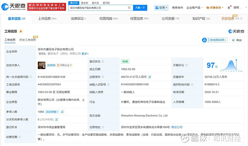 深圳市景旺电子股份有限公司成立于1993年3月,法定代表人为刘绍柏,经营范围为生产经营双面线路板、多层线路板、柔性线路板。股东信息显示,该公司由深圳市景鸿永泰投资控股有限公司、香港中央结算有限公司、深圳市皓润软件开发有限公司等共同持股。