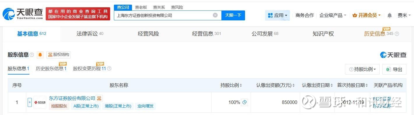 上海东方证券创新投资有限公司成立于2012年11月,法定代表人金兆强,经营范围为创业投资、金融产品投资、投资管理和投资咨询。股东信息显示,该公司由东方证券(600958)全资持股。