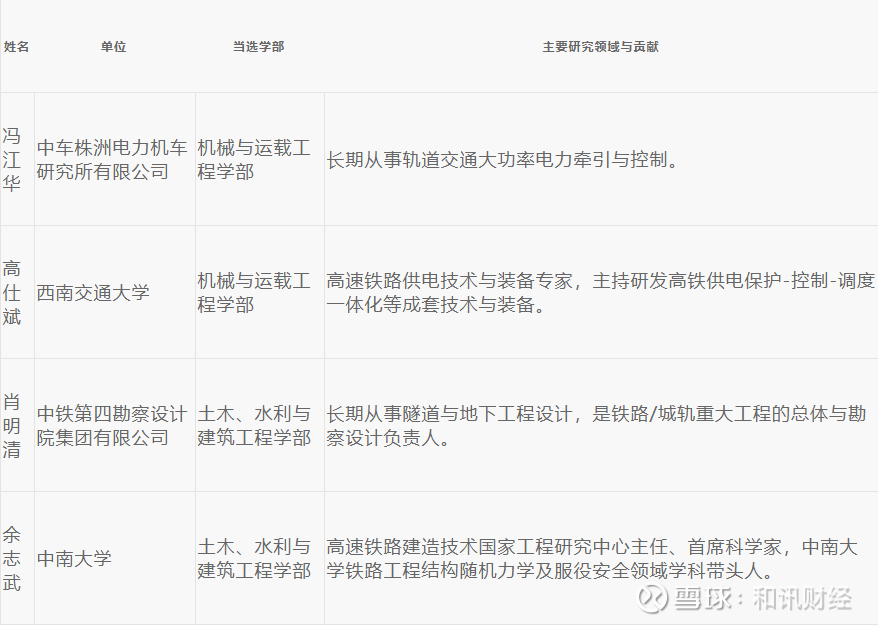 本次院士增选结果,在轨道交通行业(铁路领域)一共有4位专家学者当选中国工程院院士,分别是: