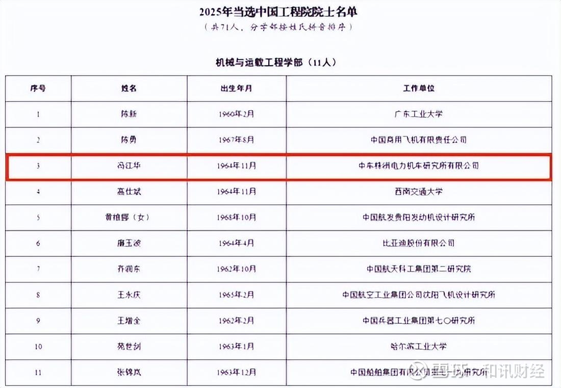 11月21日,中国工程院公布了2025年院士增选结果,中国中车首席科学家冯江华当选中国工程院院士。