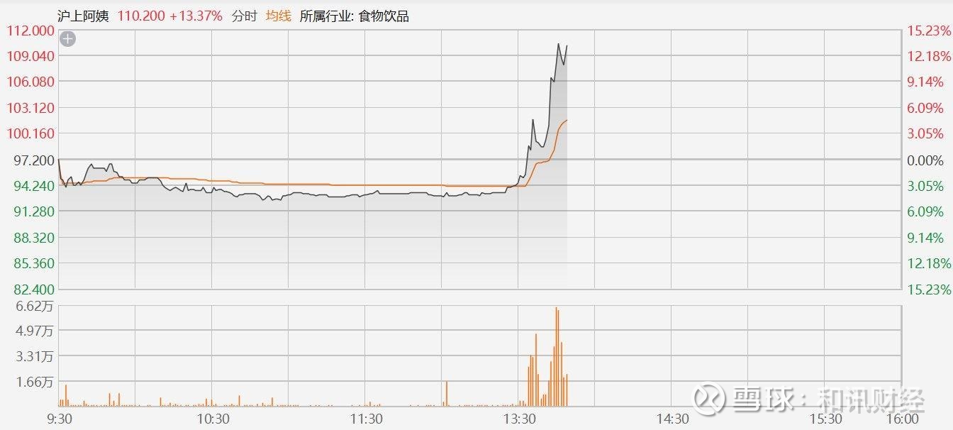 港股新消费概念股沪上阿姨午后快速拉升,大涨超15%,报112港元