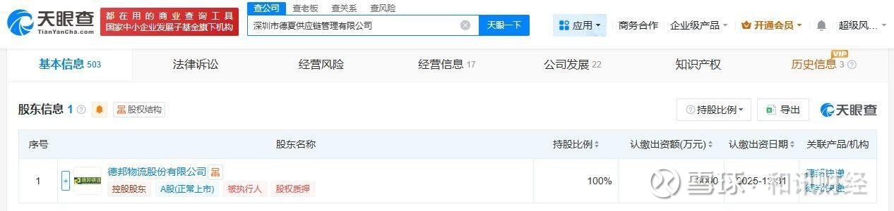 该公司成立于2022年6月,法定代表人为张闯,注册资本3000万人民币,经营范围包括供应链管理服务、园区管理服务、企业管理等。股东信息显示,该公司由德邦股份全资持股。