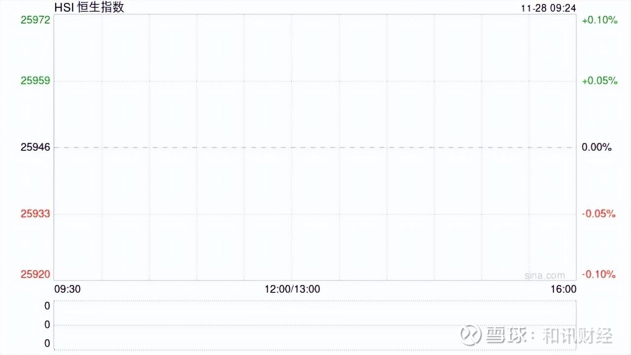 11月28日消息,港股三大指数涨跌不一。截至午间收盘,恒生指数跌0.24%,报25884.42点,恒生科技指数涨0.11%,国企指数跌0.22%。盘面上,科网股跌多涨少,小米跌超0.5%,京东涨近1%;黄金股普涨,珠峰黄金涨超5%;创新药概念高开低走,药明康德跌超3%;海伟股份上市首日跌超15%。