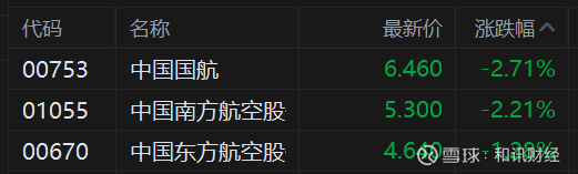 格隆汇12月2日|港股三大航空股集体走低,其中,中国国航跌近3%,中国南方航空跌2.2%,中国东方航空跌1.2%。