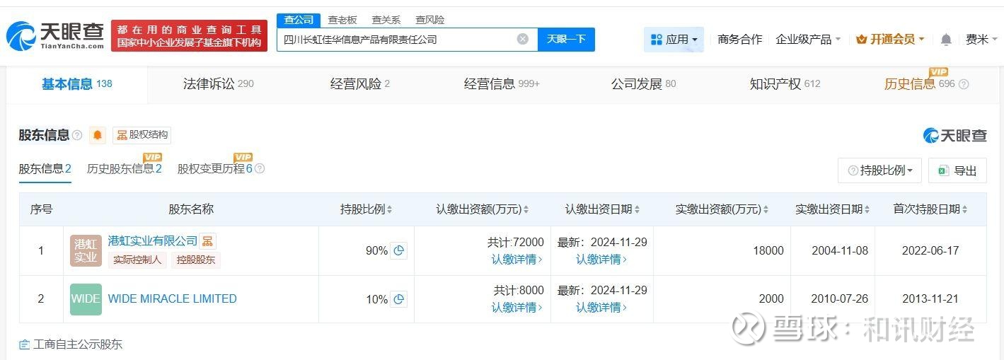 四川长虹佳华信息产品有限责任公司成立于2004年10月,法定代表人为祝剑秋,经营范围包括出版物批发、出版物互联网销售、计算机软硬件及辅助设备批发等。股东信息显示,该公司由港虹实业有限公司、WIDE MIRACLE LIMITED共同持股。