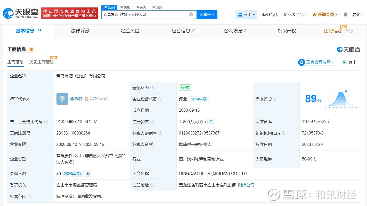 天眼查经营风险信息显示,近日,青岛啤酒(密山)有限公司新增一则简易注销公告,公告期为12月8日至12月28日。