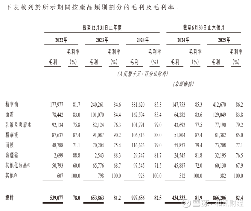 根据招股书介绍,截至今年上半年,其核心产品山茶花精华油自2014年推出以来已累计销售超过4500万瓶,精华油品类毛利率高达86.2%。