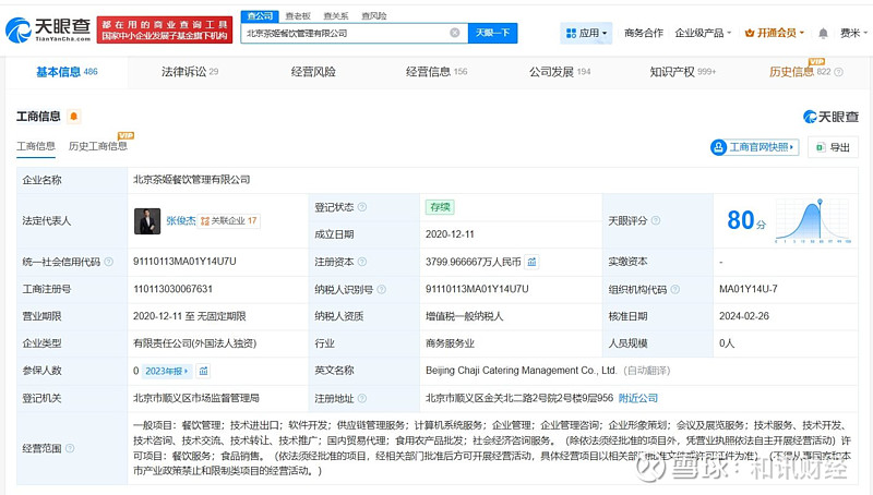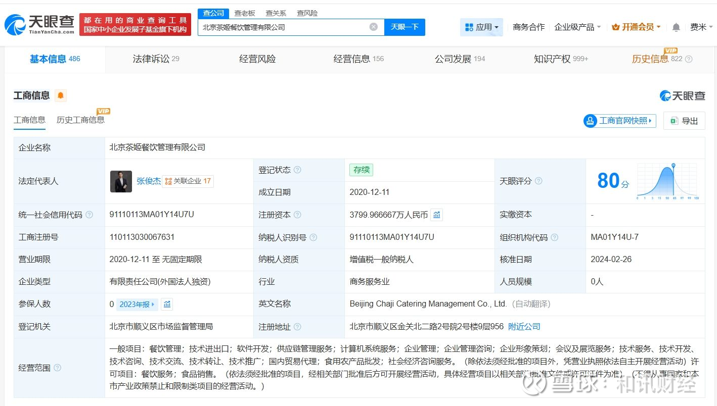 天眼查工商信息显示,霸王茶姬关联公司北京茶姬餐饮管理有限公司成立于2020年12月,法定代表人为张俊杰,注册资本约3800万人民币,经营范围包括餐饮管理、技术进出口、软件开发等。股东信息显示,该公司由CHAGEE INVESTMENT PTE.LTD.持股。控制企业信息显示,该公司控制100余家公司,值得一提的是,2025年以来,该公司已成立多家新公司,包括黑龙江茶姬企业管理有限公司、青海茶姬企业管理有限公司、内蒙古茶姬企业管理有限公司等。