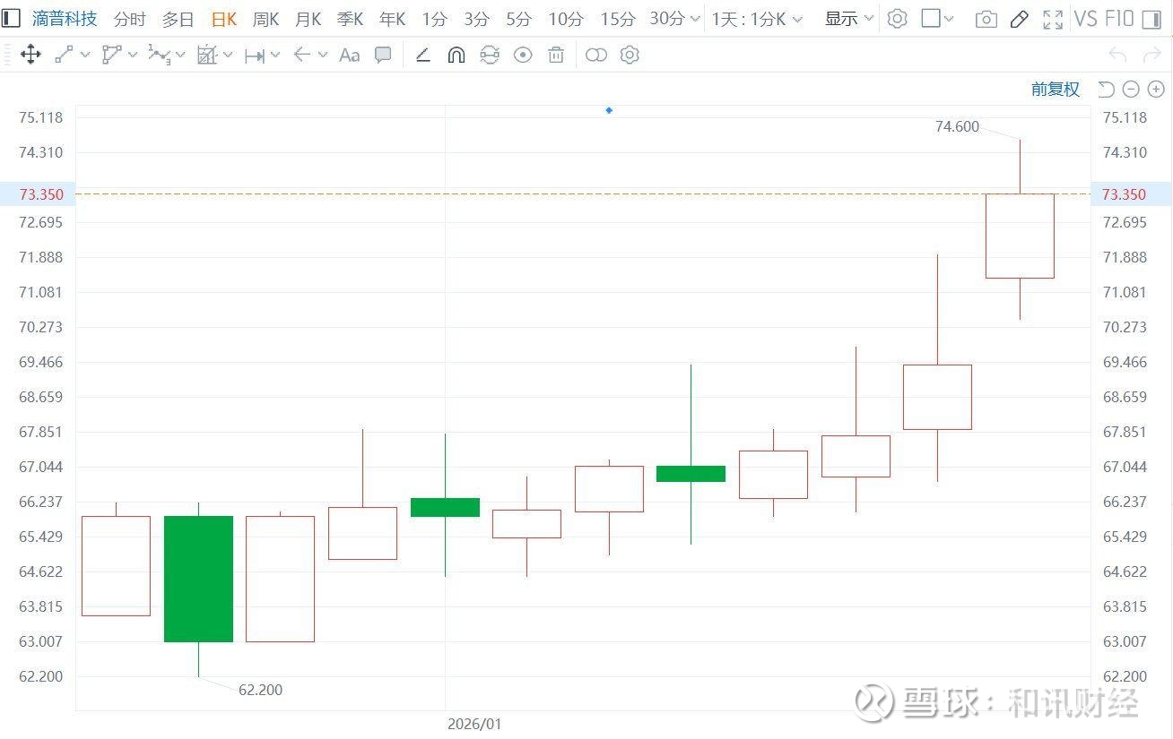 格隆汇1月13日|港股“企业级大模型AI应用第一股”滴普科技(1384.HK)今日盘中一度涨7.49%至74.6港元,股价创约3周新高;上市迄今2个半月,现价较IPO价格(26.66港元)已涨约1.8倍。该股于2025年底触底回升,12月30日至今的10个交易日累涨18.4%,跑赢大盘表现(同期恒指累涨5.88%)。