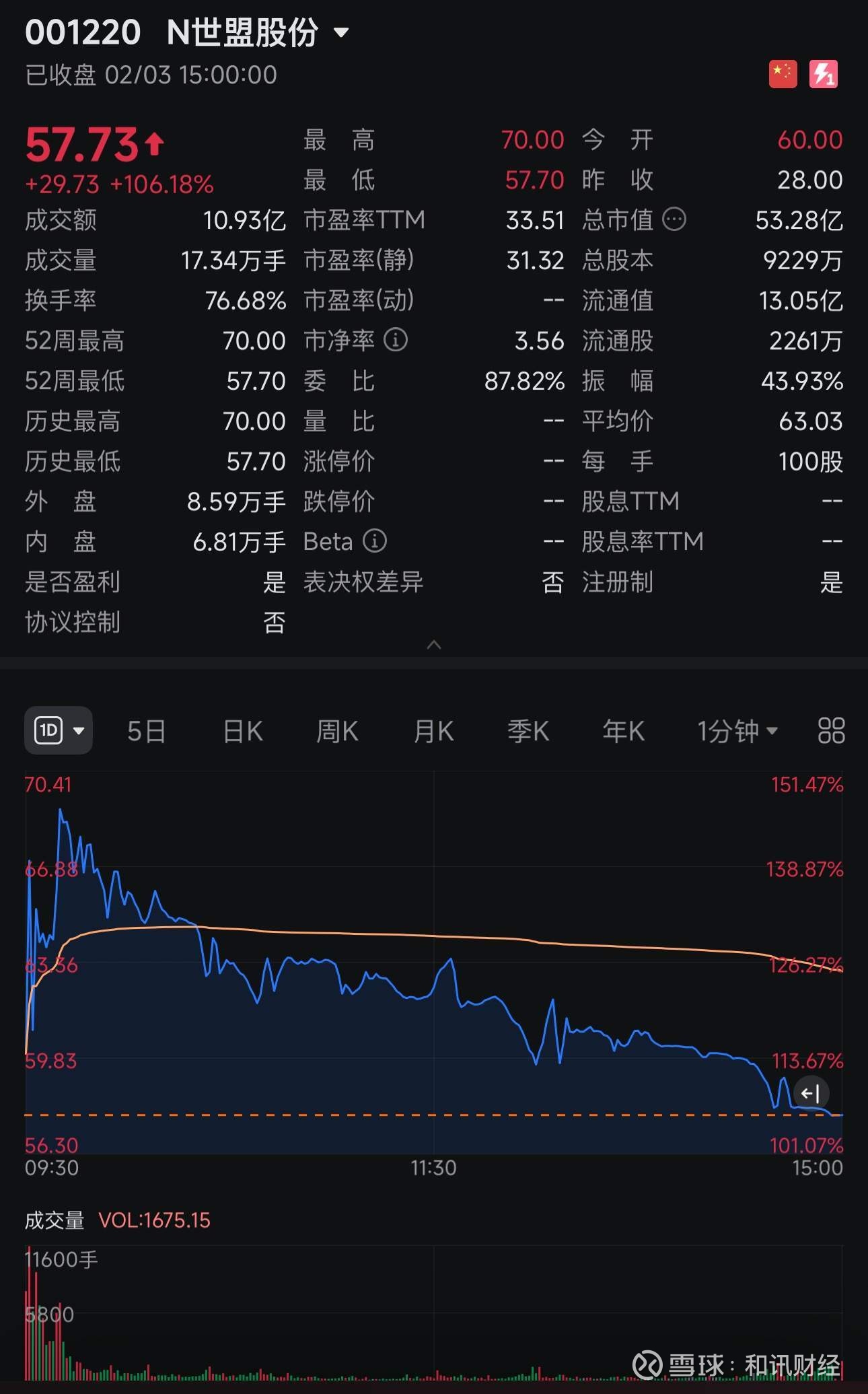发行价:28元;开盘价:60元;收盘价:57.73元;涨跌幅:106.2%