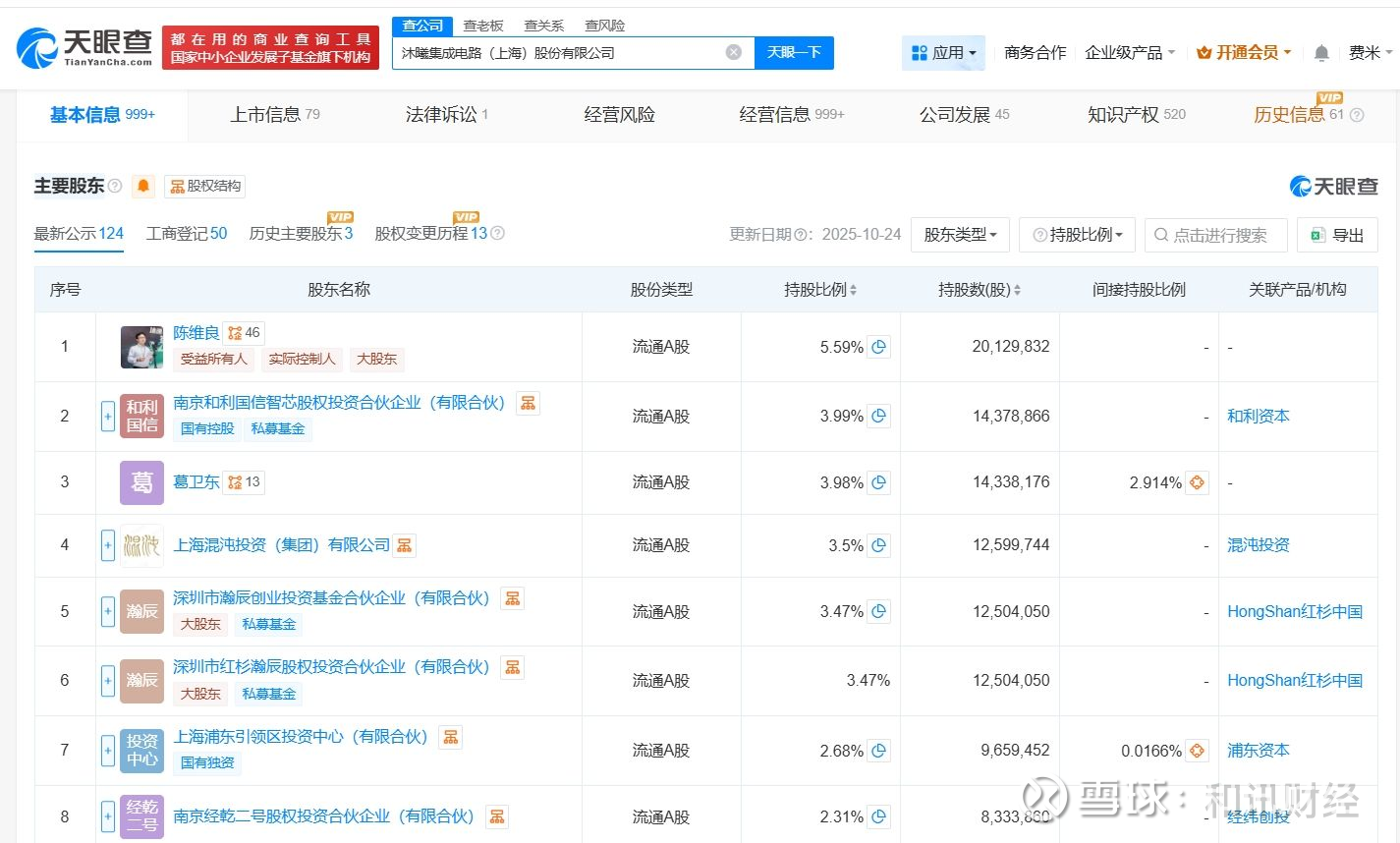 沐曦集成电路(上海)股份有限公司成立于2020年9月,法定代表人为陈维良,经营范围包括从事集成电路科技、电子科技、通讯科技、计算机软硬件科技领域内的技术服务、技术开发、技术咨询、技术转让等。股东信息显示,该公司由陈维良、南京和利国信智芯股权投资合伙企业(有限合伙)、葛卫东等共同持股。