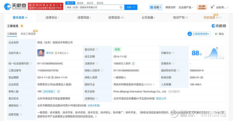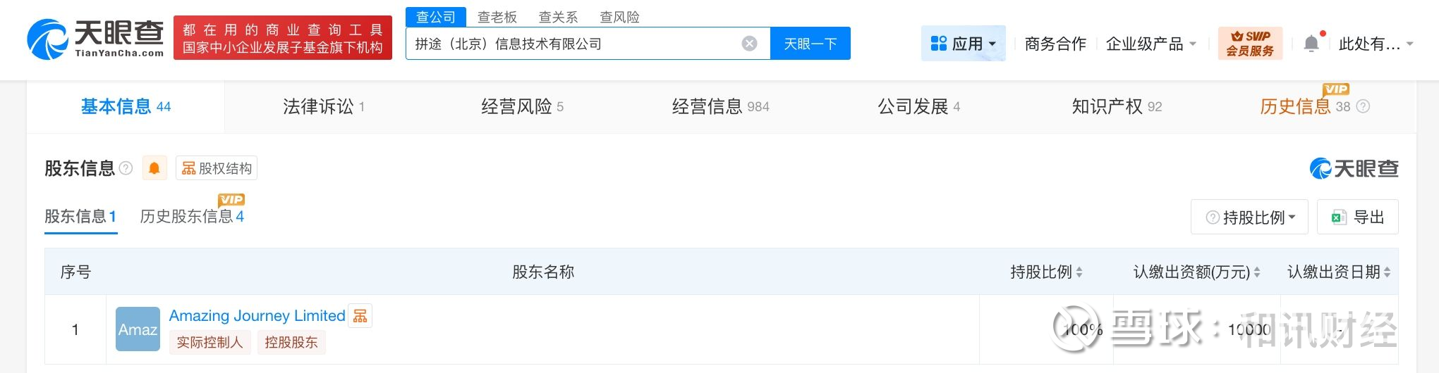 该公司成立于2014年11月,法定代表人为宋中杰,注册资本1亿人民币,经营范围为技术服务、技术开发、技术咨询、技术交流、技术转让、技术推广,软件开发。股东信息显示,该公司由Amazing Journey Limited全资持股。