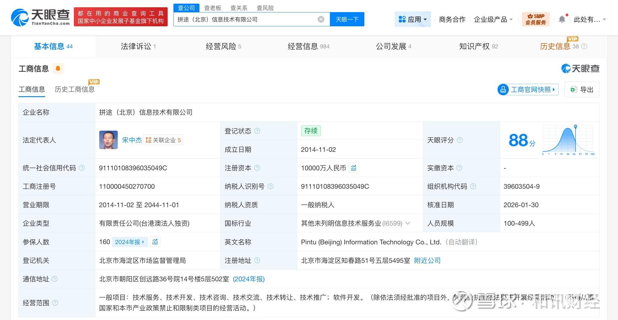 天眼查工商信息显示,近日,嘀嗒出行关联公司拼途(北京)信息技术有限公司发生工商变更,李斌卸任董事,同时,部分高管也发生变更。