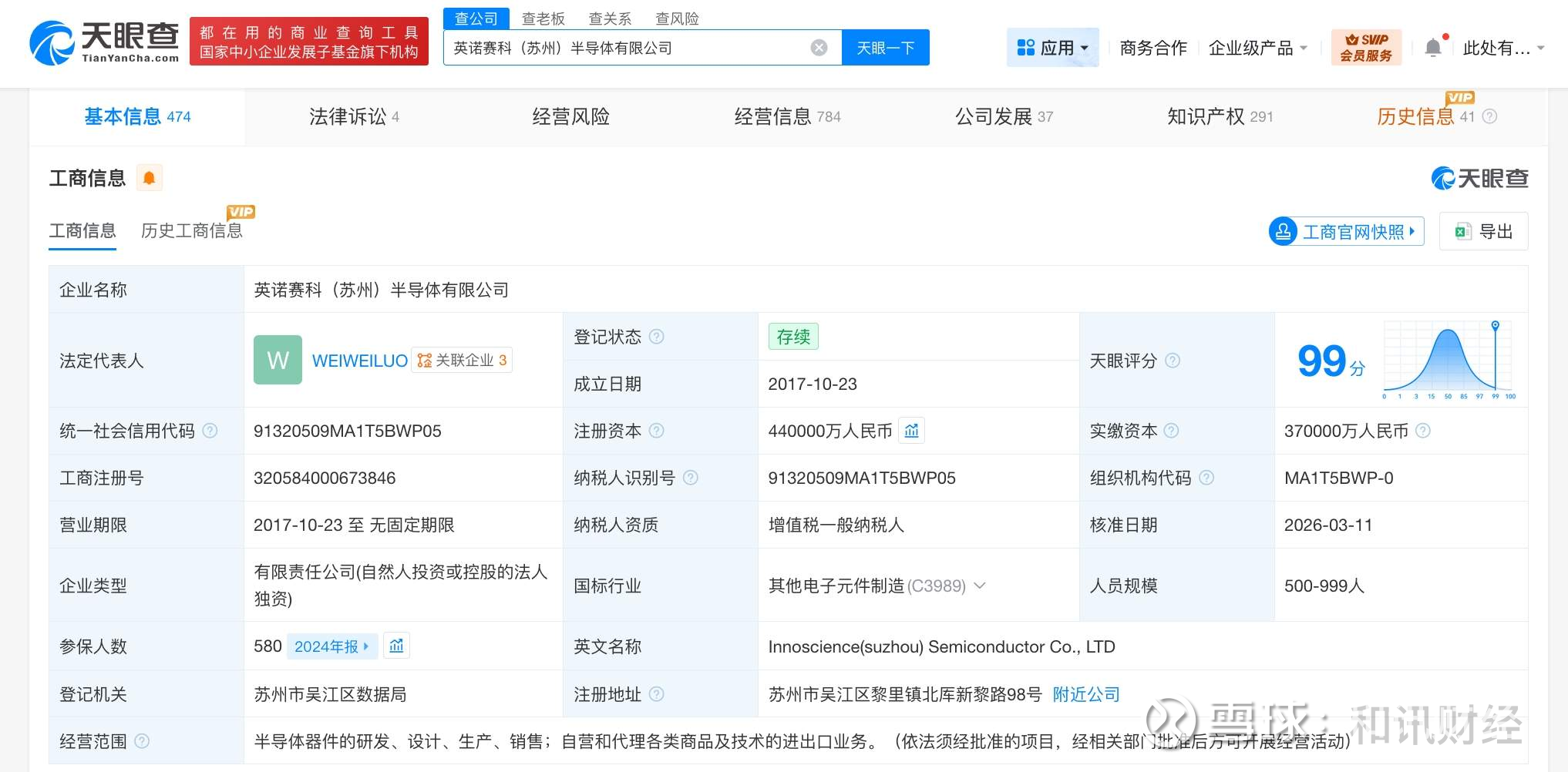 该公司成立于2017年10月,法定代表人为WEIWEILUO,经营范围包括半导体器件的研发、设计、生产、销售等。股东信息显示,该公司由英诺赛科(苏州)科技股份有限公司全资持股。