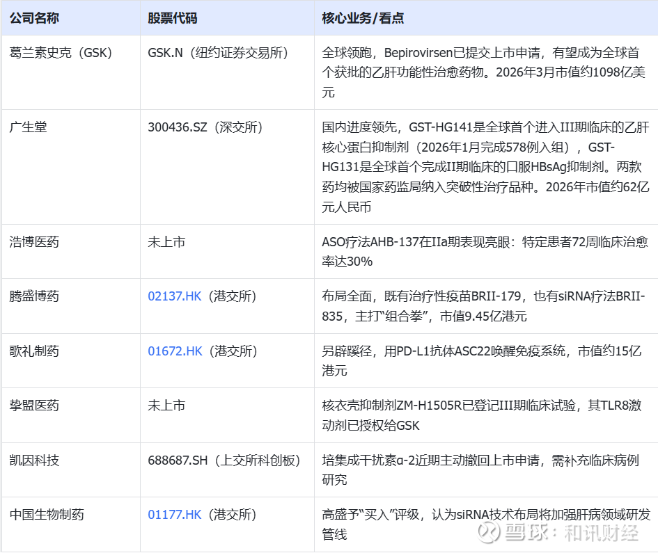 GSK的十年布局,背后是整个乙肝治疗逻辑的根本转变——从“长期压制病毒”走向“有限疗程治愈”。而在聚光灯外,一批中国药企正紧咬进度,试图在联合疗法中弯道超车。